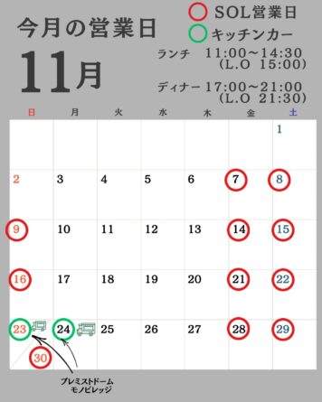11月はオーナー 鈴木ウリセスも可能な限り店舗で皆さまとSOLを楽しみたいと予定しております(調整がつかずお会いできないお時間や場合もございます ご了承くださいませ)